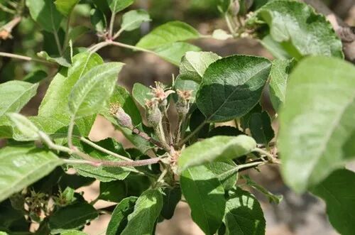 此期(4月中旬至5月上旬)主要检查叶片、嫩梢、幼果及枝干的受害情况。重点关注红蜘蛛、卷叶蛾、苹果黄蚜、苹果绵蚜、绿盲蝽、棉铃虫以及天牛等,查看内膛叶片上是否有红蜘蛛,嫩梢上是否有蚜虫,嫩梢顶端是否有绿盲蝽为害,检查嫩叶和幼果上是否有棉铃虫幼虫。对苗木和幼树,重点调查枝条顶端和枝条叶片上是否有卷叶蛾幼虫为害,枝干的疤痕和剪锯口处是否出现白色絮状物(苹果绵蚜为害),树干上和地面上是否出现大量新鲜锯末状粪便(天牛为害)。
